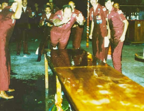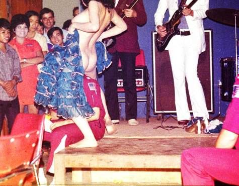 This picture and the one following: between combat missions, recrational diversions were available at the officer's club. Enlisted and officer alike, through their respective clubs, were offered escape and evasion training in a cabaret environment (more in "Barrack Room Ballads" in Alone, Unarmed and Unafraid).