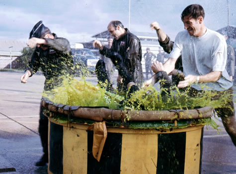 Sawadee (hello, good bye, happy new year, and other things) flights were celebrated as appropriate -- often with alcohol-assisted activities.These photos and more from this sequence are in the National Museum of the U.S. Air Force, Wright Patterson AFB, OH (more on these hijinks: “Barrack Room Ballads”, Alone, Unarmed and Unafraid). (Thai translations and spellings courtesy Danette Haley.)