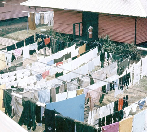 Hooch girls washed clothes and dried them where they could—sometimes on a tin roof top.