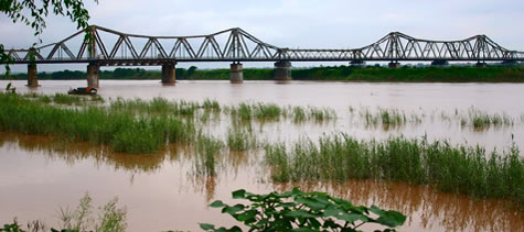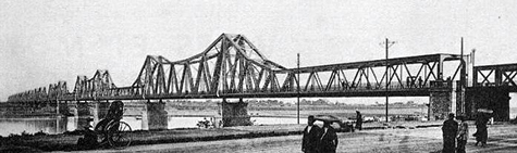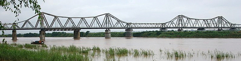 Four more views of the Paul Doumer Bridge linking China to Hanoi follow. All rail traffic from north of the Red River (read: China and the Soviet Union) to Hanoi had to pass over this bridge. The bridge was on the Do Not Bomb List until 11 August 1967; per news accounts of the era, bombing approval had to come personally from President Johnson (see “How They Brought the Good News From Ghent to Aix” in Alone, Unarmed and Unafraid). (Photo credits: Wikipedia.)