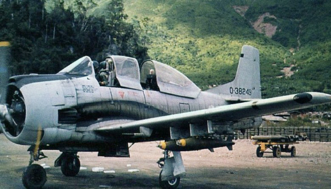 A Royal Laotian Air Force T-28 taxis at Long Tieng, Laos (more on the role of T-28s in “Colonel Wing Commander” in Alone, Unarmed and Unafraid). Long Tieng (there are multiple spellings) was also known as Lima Site 20A (LS20A), General Vang Pao, commanding. As recently as 2009, General Pao was living in the U.S. (Photo credit: Wikipedia.)
